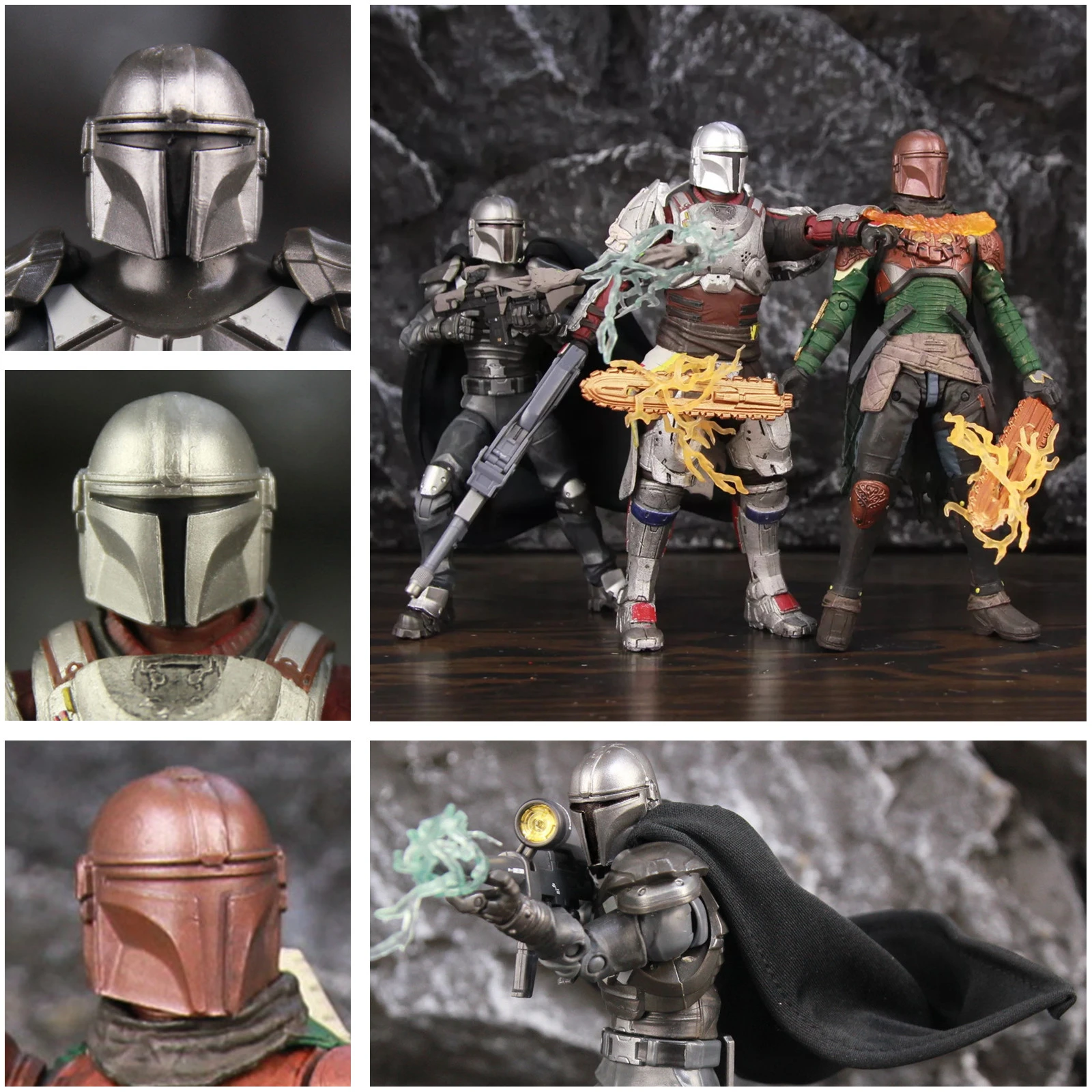 Custom Star Wars Mandalorian 6 Action Figure 17cm Heavy Infantry Silvery Vescar Armor Blaster Flame Gun Jetpack Cape Toys Doll Action Figures Aliexpress